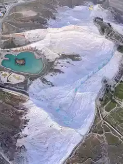 • One of the characteristic landscapes of Pamukkale is the overlapping semicircular white natural limestone terraces.