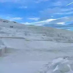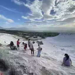 We will go directly to Pamukkale to have a look. Remember to take off your shoes before entering. You can choose to take off your shoes and put them on top, or carry your shoes while visiting Pamukkale.