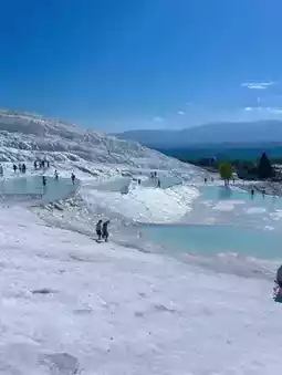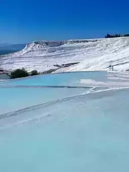 It looks like a glacier, or like salt, and this huge limestone layer was naturally formed,,and inside it is an emerald hot spring water,,,!!!