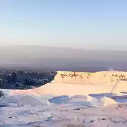 The Snow-White Kingdom of Pamukkale has been listed as a World Heritage Site. It is a famous hot spring resort in the Aegean region of Türkiye. The hot spring water in the cover cools down and deposits to form limestone. The white limestone layer contains azure blue spring water, which looks snow-white. It attracts countless fans to make a pilgrimage every year!