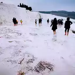 A must-see when visiting Türkiye is the World Heritage Site of Pamukkale, located in the southwestern province of Denizli. Underground hot spring water gushes out from the ground and is rich in minerals. Over the years, it forms snow-white cotton-like rocks, layer upon layer📸, forming naturally spectacular rock groups📸 and large and small pools📸👍.
