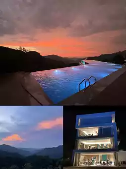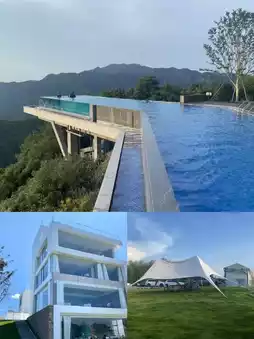 Wake up in the morning to a view of lush, rolling mountains right before your eyes, a sight of incomparable beauty👀. Enjoy the sunrise on the rooftop in the morning🌅, watch the sunset from the poolside lounge chairs in the evening🌇, and at night, there are open-air movies and a sky full of stars✨.