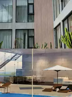 The infinity pool on the cliff has a unique transparent bottom design, which integrates the mountain and nature. You can enjoy the steep mountains under the cliff while swimming.