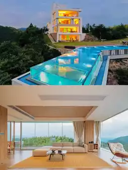 🌤️ When I first saw this guesthouse, I felt it was like a white cloud lying quietly in the mountains. The simple yet elegant architecture is in harmony with the surrounding mountains, and the infinity pool is full of romance and design.