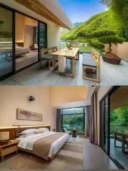 The resort features 42 spacious and bright guest rooms and suites, each equipped with a smart system🤖 Just speak to control the lights, curtains, air conditioning, and more, making your stay more convenient and comfortable. The lake-view rooms are especially stunning, with floor-to-ceiling windows framing the picturesque scenery of the lake and mountains. Lying in bed, you can enjoy the poetic views, feeling as if you've merged with nature.