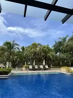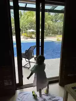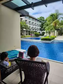 It was a shame that I couldn't play much at the beach because the weather was cloudy, but I made up for it with a large swimming pool~