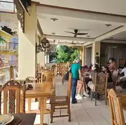 Amarela Resort, located on Panglao Island in Cebu, features a seahorse-themed design throughout. With pale yellow walls, wooden accents, and traditional furnishings, it exudes a warm, retro feel.