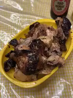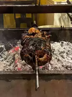 The whole chicken, grilled over charcoal and filled with the scent of charcoal,