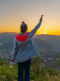 I took the elevator at 17:40 and waited for a while. The sunset + mountain view + city scenery on both sides + the wind were really pleasant.