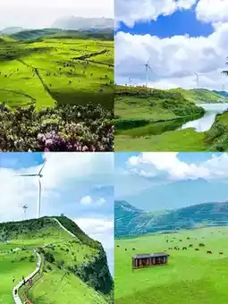 **📣 Set Off Now!** Wumeng Grassland offers vast freedom without traveling north. Drive beneath wind turbines, lounge amid drifting clouds, and revel in a high-altitude floral romance! 🌿☁️💨