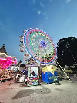 Dinner in Parapat comes alive at a cozy Chinese restaurant overlooking Lake Toba, where sizzling woks fill the air with the aroma of garlic and soy. Plates of sweet and sour fish and hot stir-fried vegetables arrive just as the sky turns indigo. After the feast, the night continues at the nearby fun fair — a whirl of laughter, bright lights, and carnival music echoing by the lake. Between neon rides and cotton candy, Parapat’s small-town charm shines brightest at night. 🎡🍜✨