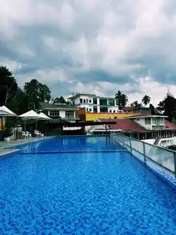 Lunch at Grand Tamaro Hotel’s poolside restaurant is where flavor meets view — a perfect blend of local warmth and natural beauty. With Lake Toba shimmering just beyond the edge of the pool, every bite of authentic Batak cuisine feels like a celebration of culture and comfort. From spicy sambal and grilled tilapia to fragrant rice and crisp vegetables, the meal pairs beautifully with the cool lake breeze and gentle splash nearby. It’s not just dining — it’s dining with a view that feeds the soul. 🍽️🌊