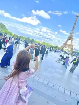 ⚫︎The Eiffel Tower looks beautiful at a moderate distance⚫︎It's on a hill, so if you go further back, there won't be any more people in the picture⚫︎It's right next to the underground and bus stops, and it's a famous place so it's easy to find in taxis⚫︎There are many souvenir shops, restaurants and cafes in the area