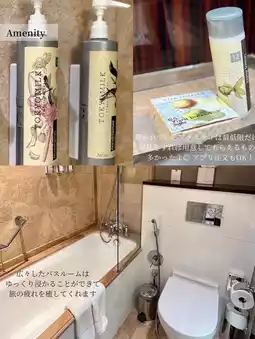 The spacious bathroom, entirely made of marble, has a luxurious feel, and a relaxing bathtub allows you to soak away your travel fatigue. 💗