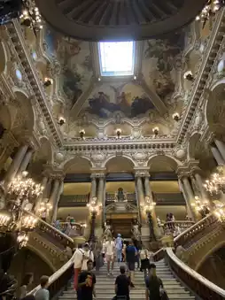 This neo-Baroque building is one of the most famous opera houses in Paris, famous for its ornate decorations, marble staircases and Chagall's frescoes on the ceiling. The interior of the opera house is magnificent, while the exterior is luxurious with sculptures and gilded details.