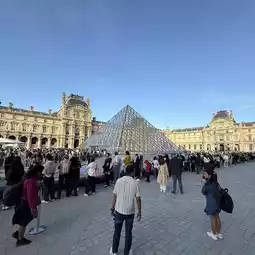 The Louvre Museum (Musée du Louvre) in Paris, France, is one of the world's largest museums, housed in a grand building that was once a royal palace. The glass pyramid entrance is iconic, attracting nearly 10 million visitors annually to this global landmark.