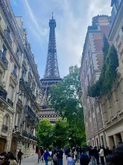 There she is—the Eiffel Tower, standing tall and effortlessly elegant under the Parisian sun. By day, she’s a vision of iron and charm, sparkling not with lights but with sheer presence. Whether you spot her peeking between buildings or looming large from the Champ de Mars, she steals the spotlight without even trying.