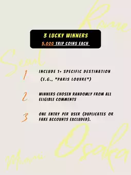 2️⃣Three Lucky Draw Winners: Comment a valid spot + earn 3+ likes to qualify for 5,000 Trip Coins each.