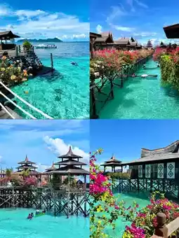 •Kapalai Water Bungalows: Stay "floating" on the sea🏠, spot clownfish🐠 and turtles🐢 right from your balcony, wake to ocean sounds🌊 with glass-clear views💎!