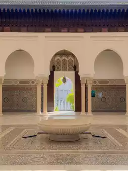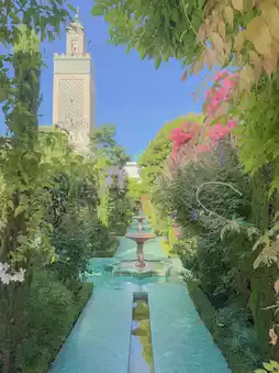This mosque in Paris boasts an exotic atmosphere with its ornate square minarets and a garden decorated with emerald tiles.