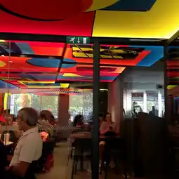 For lunch, I had a McDonald's Burger, and the interior was incredibly vibrant and stylishly designed. I've never seen anything like it at a McDonald's in another country.