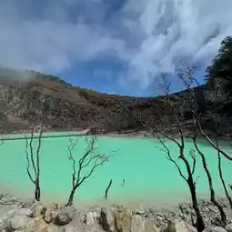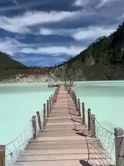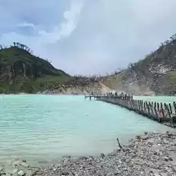 Kawah Putih, a stunning crater lake in the volcanic heart of Mount Patuha, enchants with its striking turquoise waters and surreal white surroundings. Located just 50 kilometers south of Bandung, this natural wonder offers an unforgettable experience, with its otherworldly landscape perfect for exploration and photography. A must-visit gem!