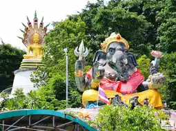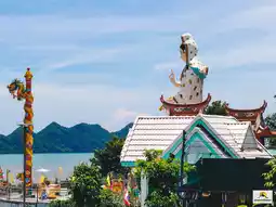 Located on a hill by the sea, this temple is a perfect blend of Thai and Chinese art. There is a large Guan Yin statue, a nine-headed Naga Buddha, and a prominent golden church. The atmosphere is quiet and the sea view is beautiful. Inside, there is also a coffee shop called “Luang Ta Pha Phloen” where you can go up and enjoy the view from a high angle. It is suitable for making merit and relaxing.