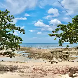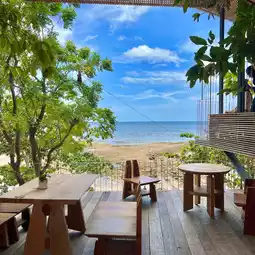 The cafe is located right by the Chumphon sea. The water is clear and peaceful, perfect for relaxing, enjoying the breeze, and listening to the waves.
