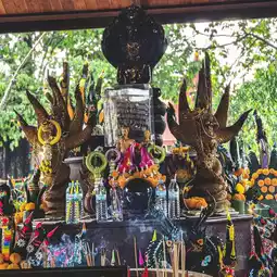 In front of the temple is a statue of the Naga. In addition, there are many sacred objects to pay homage to in the temple, such as an ancient Buddha statue. It will bring good fortune and a smooth and unobstructed life.