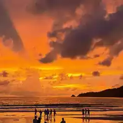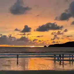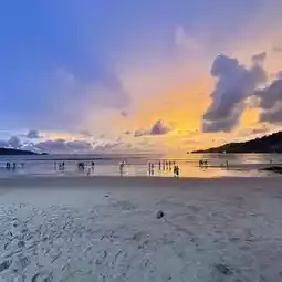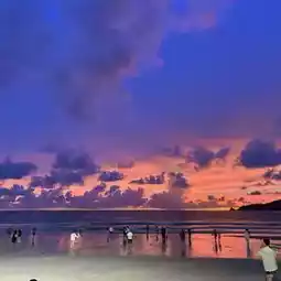 The evening at Patong Beach is incredibly beautiful and enchanting, attracting tourists from all over the world to experience its beauty and wonder. The evening atmosphere changes every five minutes, with each change, such as the color of the sky during sunset, being incredibly beautiful. Tourists take pictures to capture these memorable moments, to remember that they once visited Patong, sat by the beach, and took photos of the beautiful sky at Patong Beach to show their friends, relatives, and siblings.