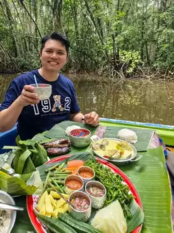 We took a peaceful boat ride along the Di Chae River, passing mangroves and soaking in the quiet beauty of the surroundings. The best part was lunch, they called it Nasi Ideh Kampung, was served on the boat – a spread of Malay kampung-style dishes like deep-fried ikan selayang, ikan masak lemak, ulam with sambal and budu, paku masak lemak, and telur dadar. Everything tasted so delicious and flavourful, just like how it's authentically made in the kampung.