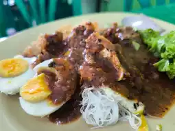 Atmosphere & Location - Satay Bang Leh, the Original, Pattani, is a simple, casual steakhouse with a few tables inside. Parking is available on the street. The restaurant focuses on chicken and beef satay, grilled fresh from the grill. The chicken satay is tender and melts in your mouth. The beef satay is fragrant and tender, and delicious. The restaurant's signature dipping sauce is incredibly rich and flavorful. Another recommended dish is Ro Yao (Ro Yao), a spicy salad-like dish filled with rice vermicelli, fried tofu, fried shrimp, and a boiled egg. The dish is then topped with satay sauce. Mix them together before eating. It's incredibly delicious and rich.