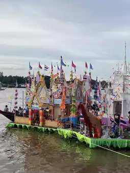 🎉🚩The 2025 Boat Procession in Surat Thani is as grand and spectacular as every year! 🙌💥 The atmosphere is super lively from morning until night. 🌞🌙 The boat processions from each temple are beautifully decorated. 🛶✨ Flowers, golden flags, and the sound of long drums ring out all the way. 🎶🥁 Surat Thani people are dressed in traditional costumes! Some even wear Thai silk to match the theme and take lots of photos. 📸💛 In addition to the Boat Procession, there is also a zone for amazing food. 🍢🍧 Fried food, desserts, and herbal drinks are all over the place. 🤤💚 Foodies will definitely be in heaven! The atmosphere is warm and local. 🫶 Teenagers, adults, and children come together lively on the streets. 🚶♀️🎈 It's an event that reflects southern culture in a very lively way. 💯 If you don't come to the Boat Procession this year, you'll miss out on a lot of great vibes! 🔥 #BoatChak68 #SuratThani #LotsOfFood #AwesomeSouthernCulture #GetDiscountsWithoutLuck
