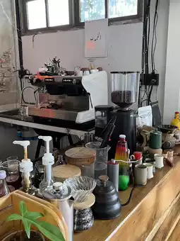 A cool cafe in a renovated warehouse, offering an open-air atmosphere with both air-conditioned and open-air areas for relaxing. 🪴
