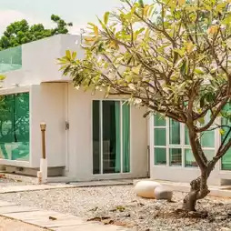 We recommend Rimtalay Resort Koh Larn, a minimalist resort with a white theme. The rooms are right next to the sea. The view is beautiful, the atmosphere is nice, and the area is spacious. The resort has many chic photo spots. Those who like taking photos will definitely be clicking away. After walking around and taking photos, continue to Indigo Cafe, sip tea, coffee, and eat cake. After eating, continue with a clear kayak activity in front of the resort. In the evening, there will be another squid fishing activity. It can be said that you can get everything in one place. It's so awesome! 🏝🏖