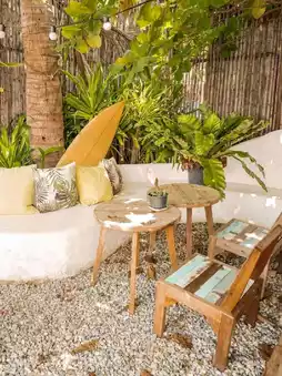A cafe on Koh Larn in a modern tropical style, right next to the sea, with a great atmosphere. Sit back and enjoy a cup of coffee while looking at the sea view. The shop has indoor, outdoor and rooftop seating. For those who like taking photos, we recommend the outdoor area. The angles are beautiful. The food and drinks are also good. There are many to choose from. If you come to Koh Larn, don't forget to stop by. It's also easy to get to, near the pier in front of the house. The shop is opposite Wat Yai Samran.