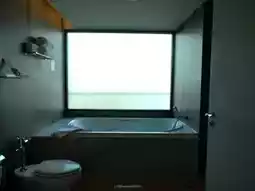 The bathroom has a very large bathtub. Most importantly, the balcony of the room