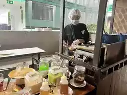 🥐 The breakfast buffet here has a lot to choose from. The chef makes it fresh and hot. It's awesome. The food is delicious. The restaurant is very spacious with many zones, both indoor and outdoor.