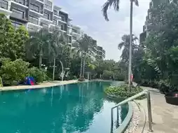 🏨 This resort is very beautiful. There are two tall tropical buildings with a swimming pool in the middle. It is designed in a chic, shady style, surrounded by trees. The atmosphere is good. It is perfect for taking the family on a trip.