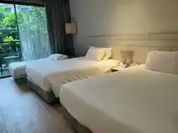 🛌 There are many types of rooms to choose from. Today, I stayed in a family room. The room is spacious, comfortable to sleep in, and there is a balcony with a view of the swimming pool.