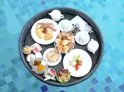 - A large outdoor swimming pool that connects every room. Open the door and get in the pool.