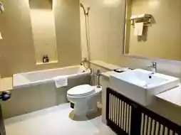 👉The lobby area is beautifully decorated. The staffs are polite. There is a beautiful swimming pool for you to swim in. It is in the middle of the resort area. The room is not narrow. The bed is big. The bathroom has a bathtub but no shower. There are complete bathroom equipment.
