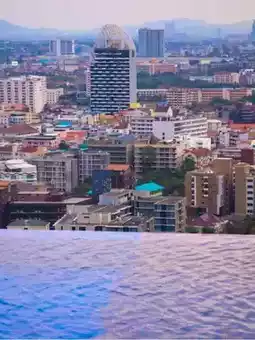 Siam at Siam Design Hotel Pattaya. The highlight of this hotel is the swimming pool on the rooftop that will allow you to experience a high-angle view of Pattaya. There are two swimming pools on the top floor, one on the 24th and the other on the 26th floor, which are the swimming pools and the Sky Bar.