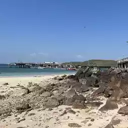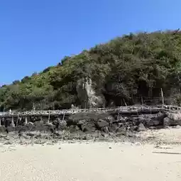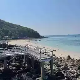 Hat Sangwan is on Koh Larn. It is a small beach on the left side of Hat Ta Waen. Walk south of Hat Ta Waen for about 10 minutes. You will pass the way to Hat Ta Waen Pier first. There will be a long white wooden bridge. Some parts are large rocks. So they made a wooden bridge to walk across to the other beach conveniently.