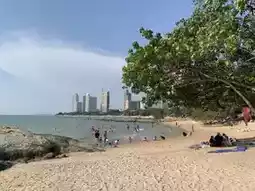 Hello, today we will share a two-day, one-night trip with friends staying at Markland Seaside Hotel. I want to say that the view is very good, but the hotel is a bit old. When we walked out, we arrived at the beach. The wind was very strong and it was very hot, lol. After checking in, we went to a secret beach, located in Soi Na Kluea 18 (I think). There is a parking lot for cars, 50 baht. The food is delicious and not expensive. My friends and I went, and it cost 350 baht each. We were very full. However, there were only two restaurants with tables to sit at. You have to walk all the way to the end of the beach. The food costs 100 to 200 baht per dish. After that, we walked around the beach for a while and then went back to the hotel. There weren't many tourists on the beach. There were squid shots for 50 baht each and sashimi. There were fried snacks and appetizers sold all along the way. Overall, there was nothing special, but it was a good place to come and relax with friends or family. #Pattaya #PattayaAttractions
