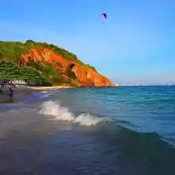Easy one day trip near Bangkok this summer. The sea is very beautiful. It must be Koh Larn near Bangkok. Drive for 2 hours, ride a speedboat for another 20 minutes, and you will reach your destination. On the island, you can travel around the island. On the island, there are motorcycles for rent for 300 baht each, full tank of gas. Traveling around the island, there are various beaches such as Ta Waen Beach, where tourists play in the water and do many activities, such as riding a banana boat, etc.