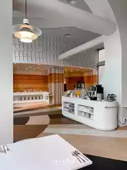 Breakfast is served as A La Carte 🍱 and you can order as much as you want. We ordered a set of sticky rice with grilled pork and American breakfast. There was a small salad bar, drinks, and bread. The staff were lovely and friendly, especially the short-haired lady. 🥳 Oh, we arrived at the accommodation early and planned to sit and wait to take pictures. It turned out that there was a room available, so we checked in and slept in the cool air conditioning since noon. 💕 555 They also gave us 4 bottles of drinking water in the room. It was awesome! 👍