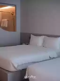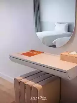 We chose to stay in the Cinematic room 🎥 This type of room has a projector projected onto the wall so you can watch movies, Netflix, YouTube, etc. in full view. We took some photos with the projector, and I'll show you some cool photo ideas in the next post~ Another thing is that the view from this room is the swimming pool of the hotel next door. When kids are playing, they're especially noisy 🤣🤣 The room size is quite spacious, with 2 beds in every room, so you can sleep comfortably~