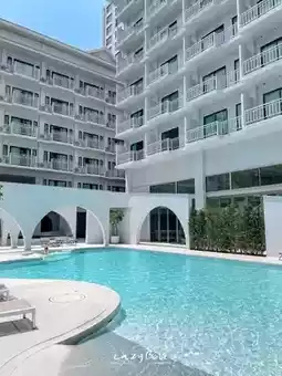 #Where to go this summer ☁️ The newly opened hotel in Pattaya, Terra Nara, is so cute ✨ There are so many photo spots, the color scheme is super cool, both the daytime and nighttime lights are beautiful. If you're a cafe lover or a minimalist, don't miss this hotel. ⛱️ The hotel is also pet-friendly, so cute! 🐕🐈 The buildings clearly separate the accommodation into different buildings~ Plus, it's very close to the beach, and the location is great, just 200 meters to the sea. 🏖️