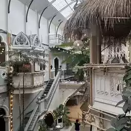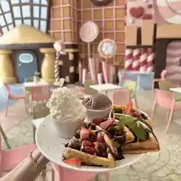 Today, we stopped by Fairy Sweet Village for dessert. There is an entrance fee, but if you buy dessert, you get one free entry per person, excluding drinks. There are many photo zones and an air-conditioned room, which is great for kids. Then we went to the House of Benedict Pataya, which is nearby and not too far away. There are also many photo spots, but there are a lot of people here, so you have to find a good angle to take photos. After 5 pm, there will be a market zone in the back that opens, which is really beautiful.